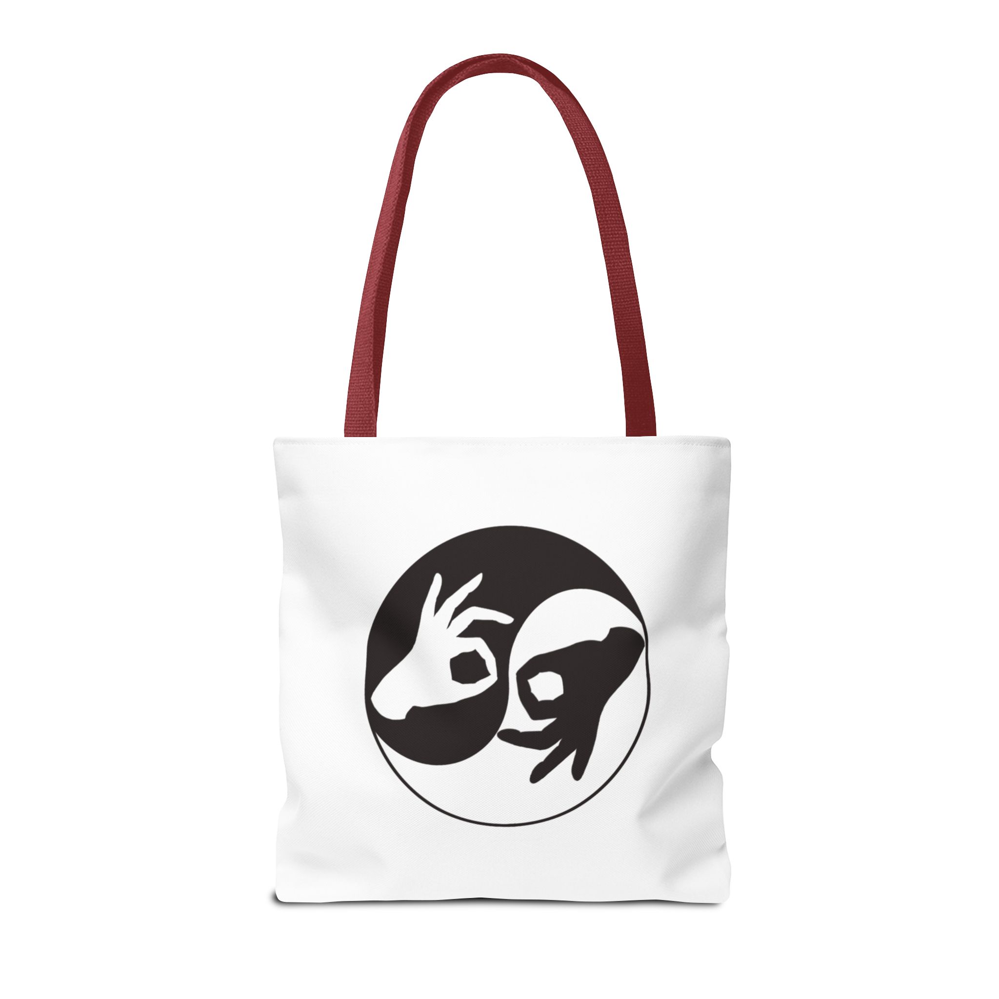 Introducing the Yin Yang Interpreter Tote Bag, a harmonious blend of style and function for your everyday needs. Featuring a striking black-and-white yin yang design symbolizing balance and connection, this tote bag is both visually captivating and practical. Crafted from 100% polyester, it’s lightweight yet durable, making it perfect for carrying essentials whether you’re heading to work, class, or a casual outing.